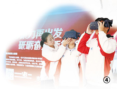 大連市第二十三中學(xué)學(xué)生用VR眼鏡體驗“云觀國防教育基地”H5小程序。 高 勇攝