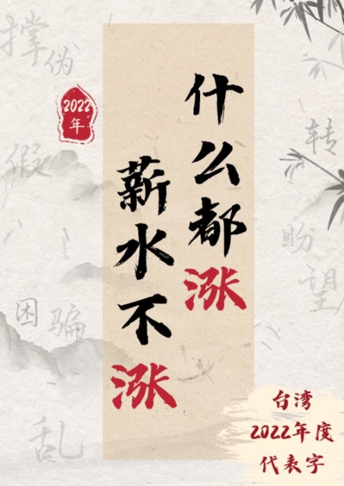 《聯(lián)合報》等島內(nèi)媒體、機構(gòu)主辦的臺灣2022年度代表字評選中,“漲”字奪冠。“這反映了臺灣當(dāng)下的現(xiàn)實:什么都漲,就薪水不漲,不少人生活陷入困境,苦不堪言。”臺灣時事評論員賴岳謙說。