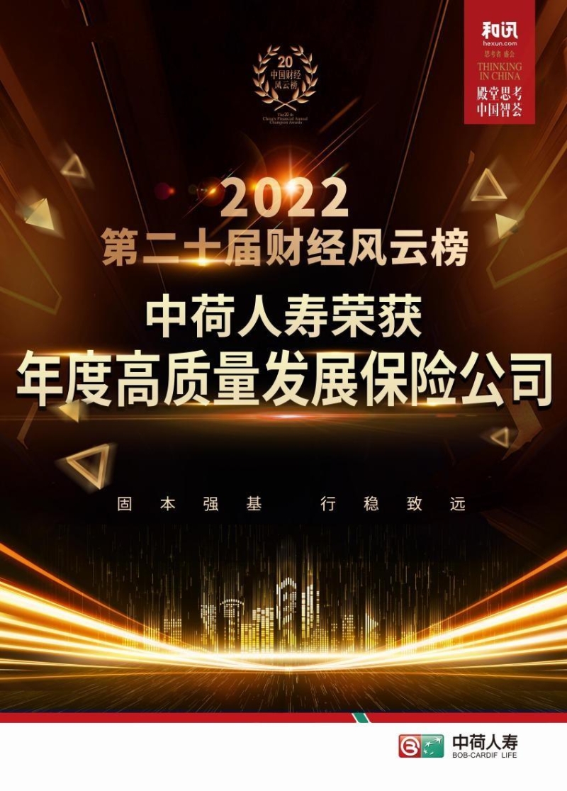 近日,由和訊網主辦的“第二十屆中國財經風云榜之保險行業(yè)評選”結果揭曉,中荷人壽榮獲“年度高質量發(fā)展保險公司”獎項。自2003年以來,財經風云榜已成功舉辦20屆,致力于從經營戰(zhàn)略、品牌建設、產品營銷等層面,深度解讀保險企業(yè)過去一年的成長歷程,是金融行業(yè)較權威、有影響力的年度評選之一。中荷人壽此次獲此殊榮,充分體現(xiàn)權威媒體及社會公眾對于中荷人壽高質量發(fā)展的認可與肯定。
