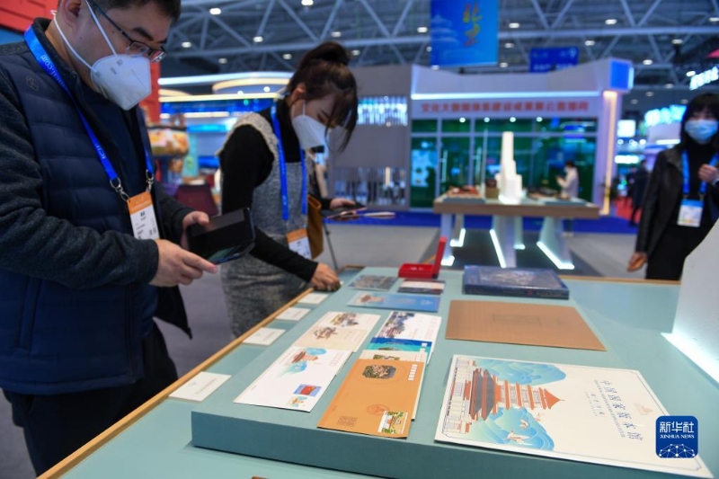 12月29日,參觀者在中國國家版本館展區(qū)了解文創(chuàng)產(chǎn)品。
