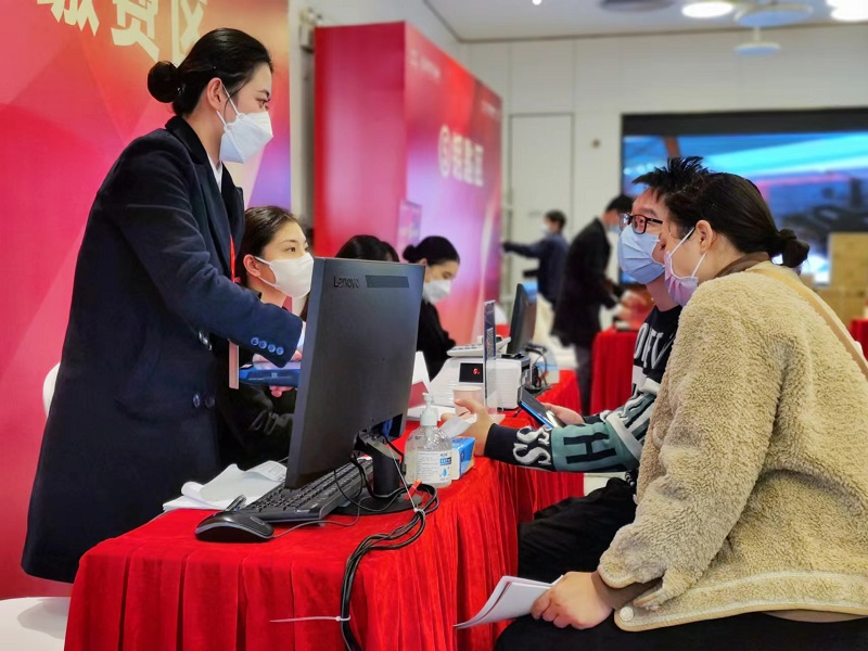 工作人員熱情地為業(yè)主辦理手續(xù)