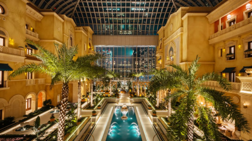 以九個創(chuàng)新中國風「珠寶盒」堆疊而成的美獅美高梅綜合度假酒店,是澳門地平線上備受矚目的時尚文化旅游地標。其壯觀且創(chuàng)新的設計嬴得國際建筑業(yè)界的認可,獲建筑界奧斯卡Emporis Skyscraper Awards評選為“全球最佳摩天大樓獎”。作為美獅美高梅綜合度假酒店內的公共藝術空間,視博廣場的天幕被評為最大的懸跨網架式結構玻璃屋頂(自支撐),是中國澳門首個建筑及結構范疇的吉尼斯世界紀錄?榮譽。在最新的2022年度《福布斯旅游指南》星級名單中,美高梅獲頒七項五星評級,包括頂級酒店住宿、水療及餐飲概念皆備受認可。美獅美高梅內擁有超過1400間豪華客房及套房,當中包括首間超豪華國際酒店別墅“雍華府”、主打中國現代設計、以東方美學為理念的御獅別墅、以及以紐約時尚復式單位為藍本,結合了創(chuàng)新品味設計概念的天樂閣等,為賓客呈現了更多與眾不同的極致奢華度假體驗。