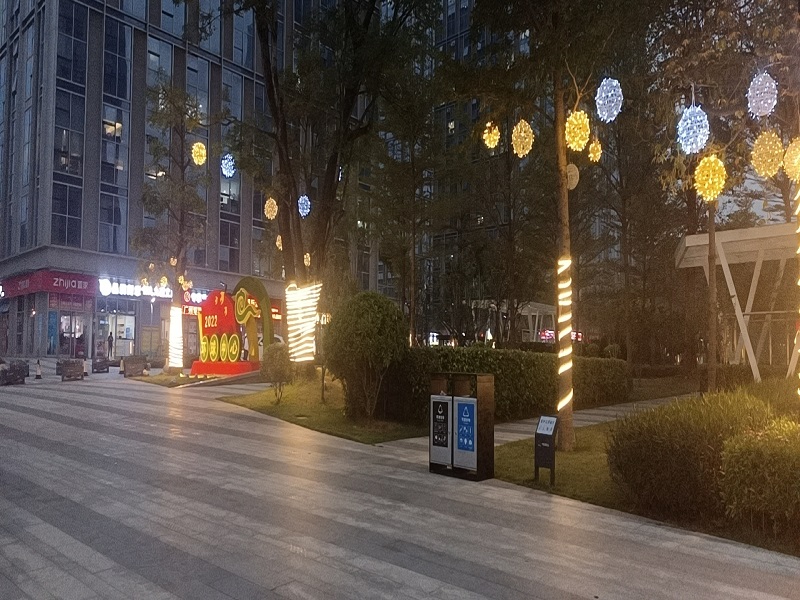 經過謝揚眉與各部門負責人的認真選址后,園區(qū)中央1號樓旁的位置成為了此次道路景觀的最佳設置點。敲定地點后,物業(yè)服務中心品質部人員精心挑選、購買節(jié)能彩燈及景觀標志,工程部強電組人員馬不停蹄地開始懸掛裝飾景觀設置點。