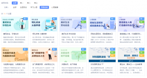 升學(xué)e網(wǎng)通針對(duì)不同年級(jí)學(xué)生可能面臨的問題,細(xì)致劃分“班會(huì)課”版塊內(nèi)容,為在校老師提供了豐富的教學(xué)素材。屆時(shí)班主任老師也可以根據(jù)版塊內(nèi)的不同類別,有選擇性、有針對(duì)性的對(duì)學(xué)生進(jìn)行德育教學(xué),助力學(xué)生不同方面的塑造,賦能學(xué)生成長(zhǎng)之路。