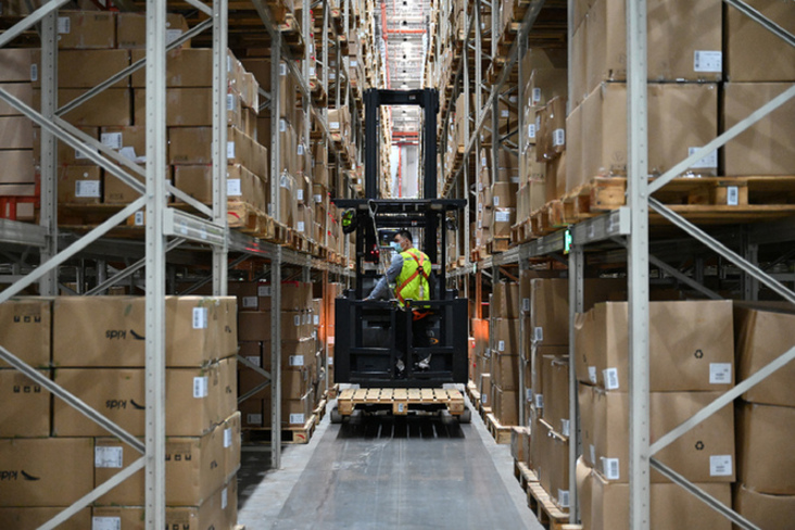 2022年5月16日,工人在福建省晉江市安踏集團一體化物流產(chǎn)業(yè)園忙碌。新華社福建分社記者 周義攝