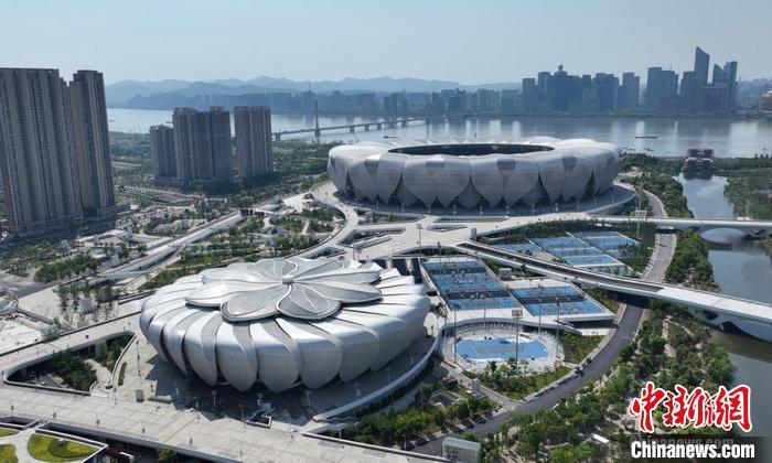 航拍杭州奧體中心的“大蓮花”和“小蓮花”?!?資料圖) 中新社記者 王剛 攝