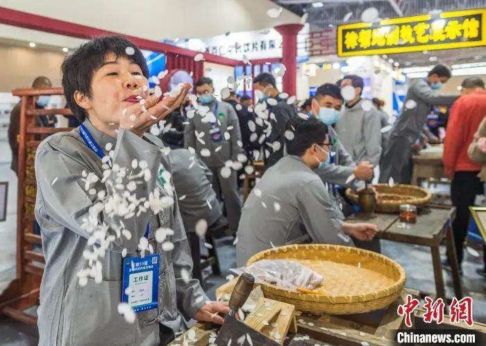 在樟樹岐黃小鎮(zhèn)會展中心,樟幫傳統(tǒng)中藥炮制技藝展演精彩上演。姜濤 攝