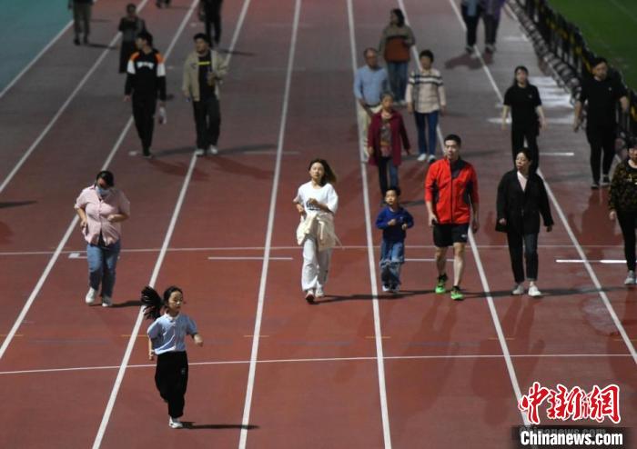 民眾在蕭山體育中心體育場內(nèi)夜跑。王剛 攝