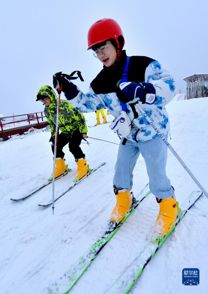 1月2日,游人在湖北省宣恩縣一滑雪場體驗滑雪。