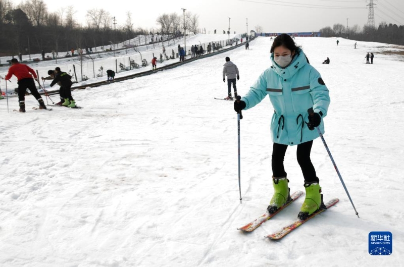 1月2日,滑雪愛好者在河南省濟源市一滑雪場練習滑雪。