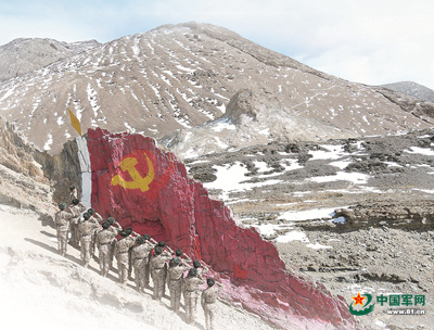 新疆軍區(qū)某部組織官兵在黨旗山宣誓。索延客攝