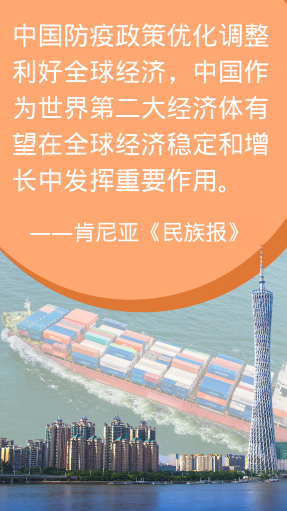 肯尼亞《民族報(bào)》報(bào)道認(rèn)為,中國防疫政策優(yōu)化調(diào)整利好全球經(jīng)濟(jì),中國作為世界第二大經(jīng)濟(jì)體有望在全球經(jīng)濟(jì)穩(wěn)定和增長中發(fā)揮重要作用。