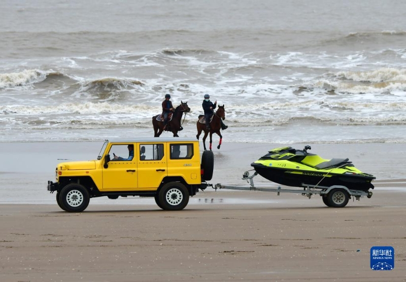 1月1日,馬術俱樂部成員在福建省福州市長樂區(qū)南澳海灘體驗海騎樂趣。