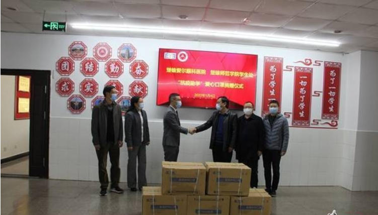 疫情伊始,醫(yī)院黨支部帶領(lǐng)團(tuán)支部青年志愿者積極投身疫情防控工作,參與楚雄西高速路口、青山嘴省道出入城車輛登記及人員體溫測量。同時發(fā)起倡議捐款捐物,先后向楚雄州紅十字會、州內(nèi)各醫(yī)療機(jī)構(gòu)、學(xué)校和堅守在抗疫一線人員捐贈護(hù)目鏡、高清偏光太陽鏡、口罩、環(huán)境消毒藥片等價值10萬元抗疫物資。在疫情防控常態(tài)化情況下,助力開學(xué)、大學(xué)生返鄉(xiāng),先后向楚雄師范學(xué)院捐贈1萬只口罩,免費(fèi)向全州6-18歲青少年兒童發(fā)放口罩2萬多只,向雙柏縣大莊鎮(zhèn)捐贈9000只兒童口罩;在上海疫情嚴(yán)重時期,通過楚雄州紅十字會向上海嘉定地區(qū)援助1萬只醫(yī)用口罩,支持上??挂吖ぷ?。