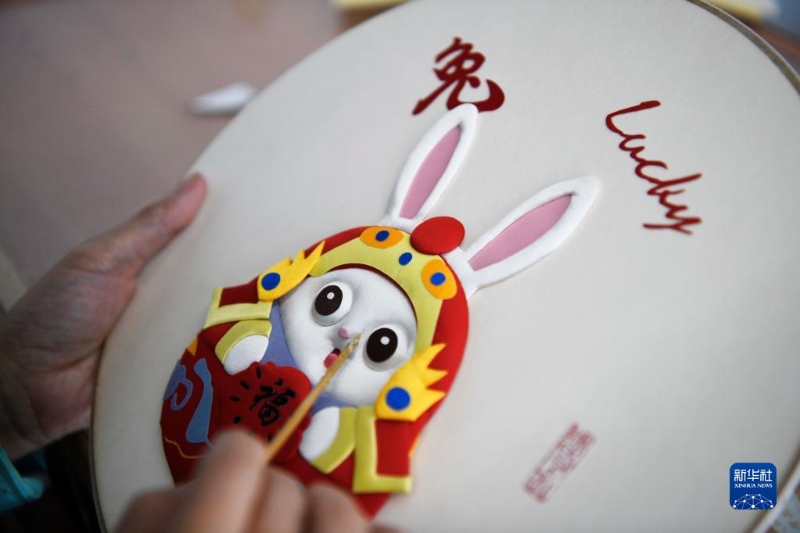 臘月里,河北省豐寧滿族自治縣布糊畫手工藝人以兔為主題,制作憨態(tài)可掬、萌味十足的兔年主題布糊畫,喜迎新春佳節(jié)。布糊畫是國家級非物質(zhì)文化遺產(chǎn),以綾羅綢緞等面料為主,在滿族傳統(tǒng)工藝“補(bǔ)花”的基礎(chǔ)上,取繪畫、浮雕、堆繡、剪紙、裱糊、布貼畫等傳統(tǒng)工藝精華結(jié)為一體,呈現(xiàn)出浮雕立體的效果。