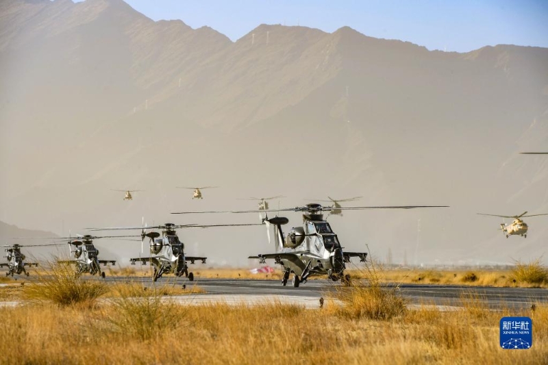 1月3日,在海拔3700米的拉薩某訓(xùn)練場,西藏軍區(qū)某旅各型直升機(jī)依次升空,向預(yù)定作戰(zhàn)地域機(jī)動。
