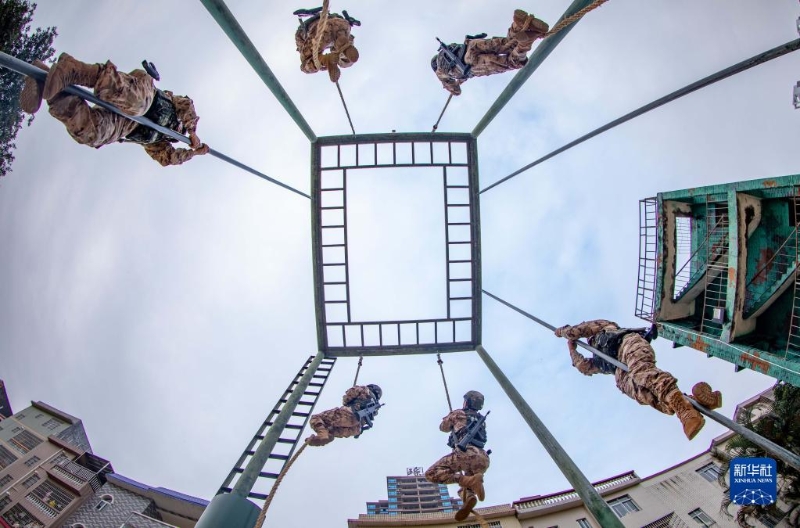1月4日,武警廣西總隊(duì)北海支隊(duì)特戰(zhàn)隊(duì)員進(jìn)行爬繩(桿)訓(xùn)練。