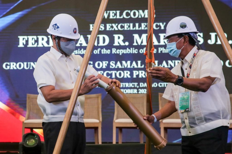 2022年10月,同樣在達(dá)沃。達(dá)沃-薩馬爾大橋開工儀式上,菲總統(tǒng)馬科斯與中方建設(shè)者共同埋下時(shí)間膠囊,相約在大橋通車時(shí)取出,共同慶祝中菲合作的又一個(gè)里程碑。