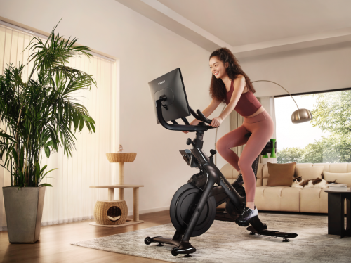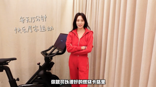 在安全地上車之后,她選擇了一節(jié)自己喜歡的音樂騎行派對(duì),跟著主理人的指導(dǎo),開始絲滑順暢地踩踏。如今在家,也能隨時(shí)高效率地在 TANGO 上進(jìn)行有氧和無氧相結(jié)合的訓(xùn)練,她表示非常過癮?!案@個(gè)阻力與踏頻,你不會(huì)覺得有那么累,但還是會(huì)流一點(diǎn)點(diǎn)的汗。跟著音樂走你會(huì)覺得時(shí)間過得很快,短短15 分鐘,消耗了就有127大卡!因?yàn)樗恢庇兄魳泛椭骼砣藥е?,所以不?huì)覺得很枯燥,可以快樂的燃脂。而且在家里運(yùn)動(dòng)真是太方便了!”