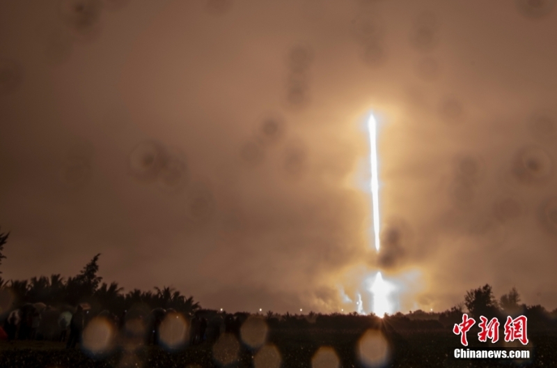 1月9日6時0分,中國在文昌航天發(fā)射場使用長征七號改運(yùn)載火箭,成功將實(shí)踐二十三號衛(wèi)星和搭載的試驗(yàn)二十二號A/B星發(fā)射升空,三顆衛(wèi)星順利進(jìn)入預(yù)定軌道,發(fā)射任務(wù)獲得圓滿成功。圖為民眾冒雨觀看長征七號改運(yùn)載火箭升空(長曝光圖片)。 中新社記者 駱云飛 攝