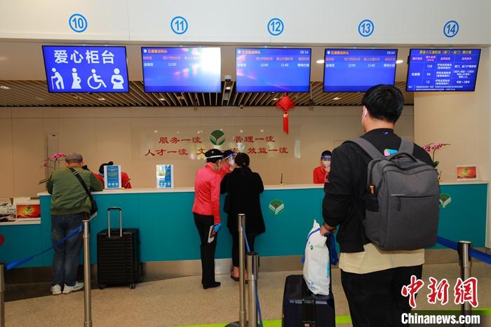 1月7日,臺(tái)胞在廈門五通客運(yùn)碼頭辦理通關(guān)乘船手續(xù)。 中新社發(fā) 鐘欣 攝