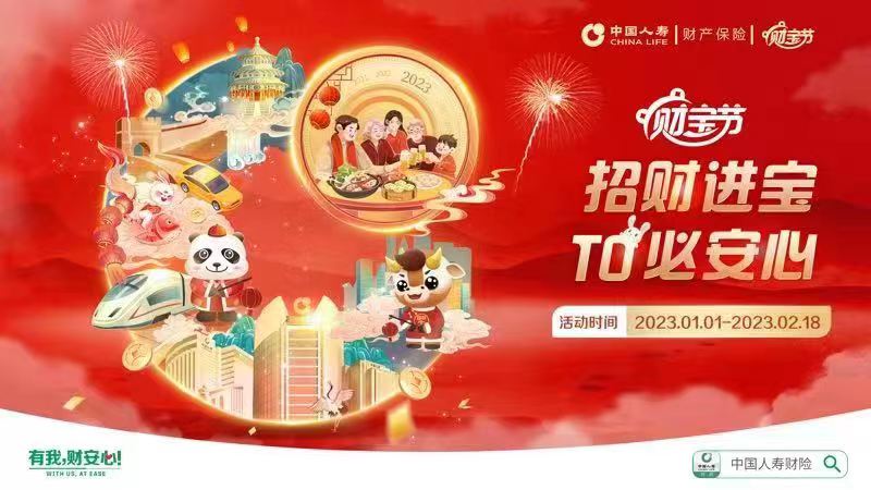 據(jù)悉,本屆中國人壽財險“財寶節(jié)”以“招財進寶 兔必安心”為主題,以線上化、數(shù)字化、智能化經(jīng)營為主線,聚焦新產(chǎn)品、新服務、新科技、新模式,為客戶提供“安心享服務、安心享保障、安心享團圓”的保險全新保障體驗;輸出“活力新春”“健康家庭”“福力全開”“禮”享財寶節(jié)的理念!著力將“財寶節(jié)”打造為兼具中國人壽財險特色的服務節(jié)、營銷節(jié)、歡樂節(jié)和品牌節(jié)。