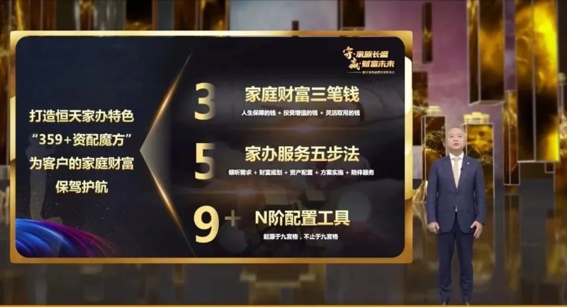 目前,恒天家辦提供的財(cái)富管理咨詢服務(wù)產(chǎn)品之一就是已經(jīng)形成了“359+資配魔方”專業(yè)服務(wù),全力為客戶的家庭財(cái)富保駕護(hù)航?!?”即三筆錢,包括人生保障的錢、投資增值的錢和靈活取用的錢?!?”即傾聽(tīng)需求、財(cái)富規(guī)劃、資產(chǎn)配置、方案實(shí)施、陪伴服務(wù)五步循環(huán)服務(wù)法貫穿客戶服務(wù)的始終。“9+”意思是“源于9,不止于9”,即以九宮格的資產(chǎn)配置思維,提供的配置服務(wù),對(duì)應(yīng)每一位客戶在不同家庭生命周期的個(gè)性化需求,提供升級(jí)版的九宮格定制化資產(chǎn)配置方案。同時(shí),已經(jīng)上線的配置大師科技信息系統(tǒng)結(jié)合投研將為資產(chǎn)配置方案提供專業(yè)賦能和科技賦能。