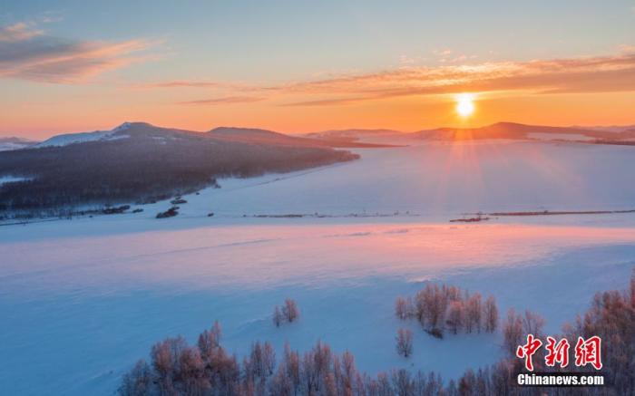 圖為晚霞映射下的內(nèi)蒙古大興安嶺如夢(mèng)如幻。 李明 攝