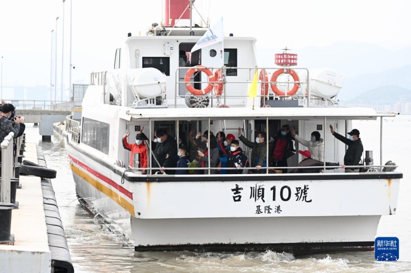 1月8日,在福州馬尾瑯岐碼頭,臺胞抵達后前往邊檢大廳。