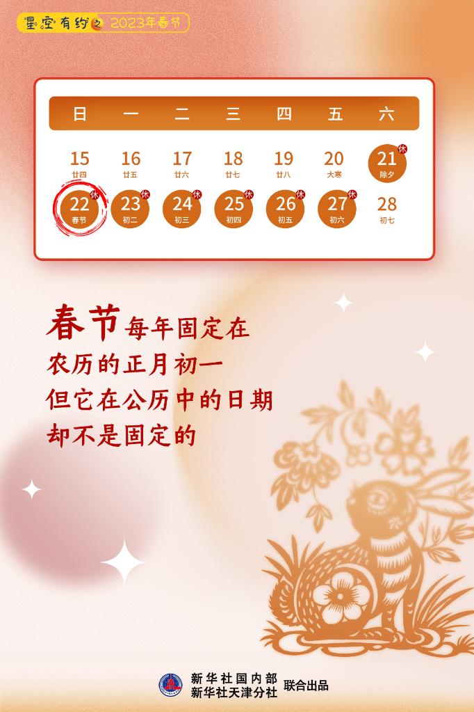 新華社天津1月10日電(記者周潤健)春節(jié)的腳步日益臨近,1月22日,我們將迎來2023年春節(jié)。天文科普專家介紹,2023年春節(jié)是21世紀(jì)這100年里的第二早春節(jié),比21世紀(jì)最早春節(jié)只晚了一天?! ?/p>