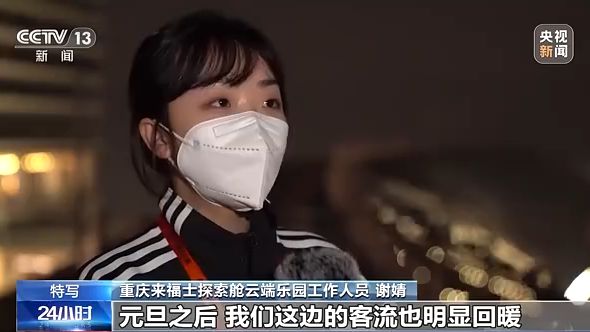 重慶來福士探索艙云端樂園工作人員謝婧:元旦之后,我們這邊的客流也明顯回暖,同比疫情之前客流明顯回暖到7成左右?! ?/p>