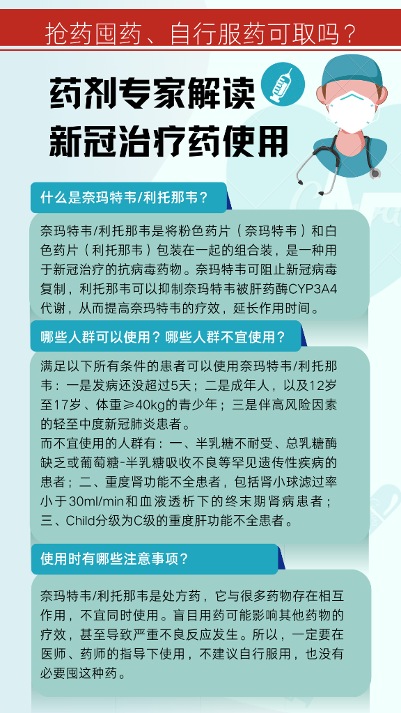 最近,新冠治療藥奈瑪特韋/利托那韋(Paxlovid)備受關(guān)注。它是什么藥?哪些人可以使用?如何使用?有哪些注意事項(xiàng)呢?陸軍軍醫(yī)大學(xué)陸軍特色醫(yī)學(xué)中心藥劑科臨床藥師作出了解答。