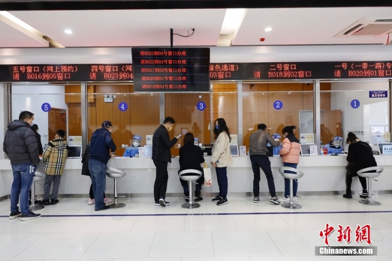 1月9日,在上海市公安局長(zhǎng)寧分局出入境接待大廳,市民有序辦理個(gè)人業(yè)務(wù)。中新社記者 殷立勤 攝