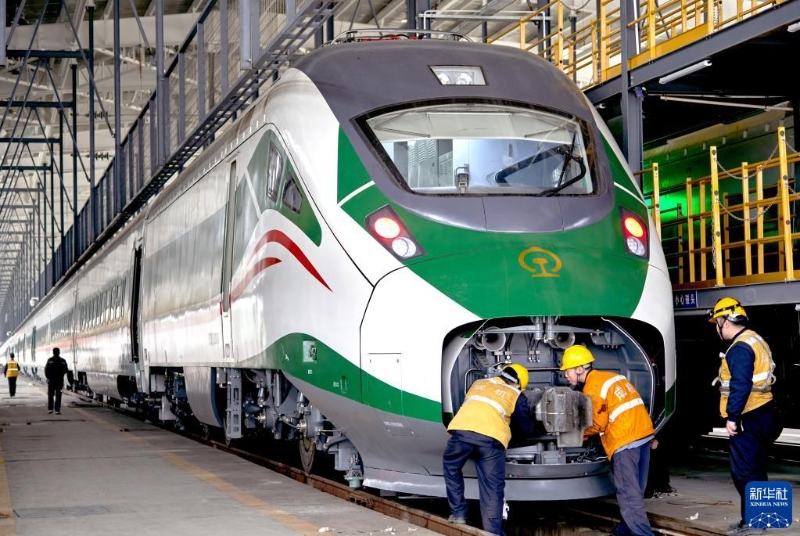 1月9日,在雙流客車(chē)技術(shù)整備所,檢修人員對(duì)新成昆鐵路“復(fù)興號(hào)”集中動(dòng)力動(dòng)車(chē)組進(jìn)行整備,新配置的9組動(dòng)車(chē)組將于1月13日上線運(yùn)行。 新華社記者 薛晨 攝