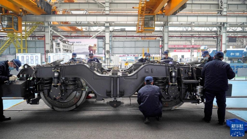 1月9日,在成都機(jī)務(wù)段和諧型大功率機(jī)車(chē)檢修基地,檢修班組對(duì)轉(zhuǎn)向架各部件進(jìn)行檢查和維修。 新華社記者 薛晨 攝