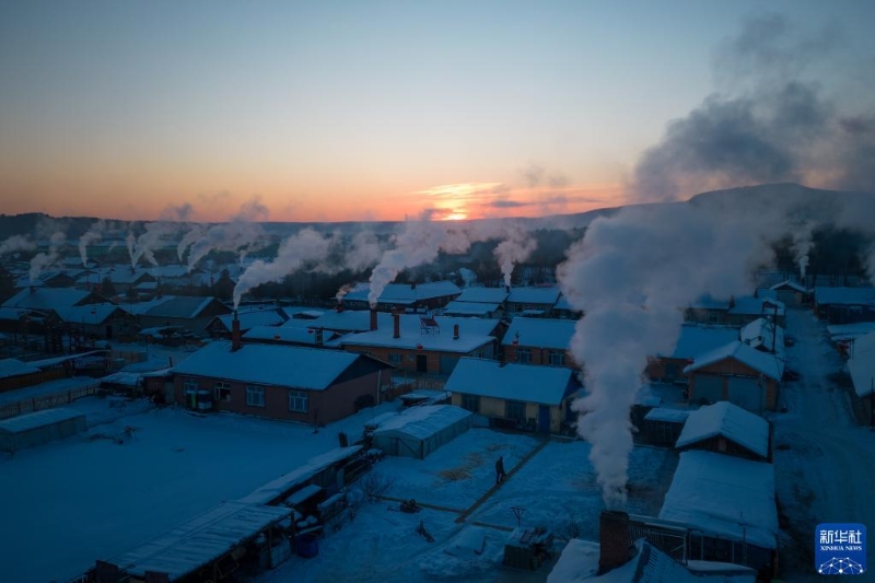 這是1月8日拍攝的漠河市北極村的清晨景象(無人機(jī)照片)。