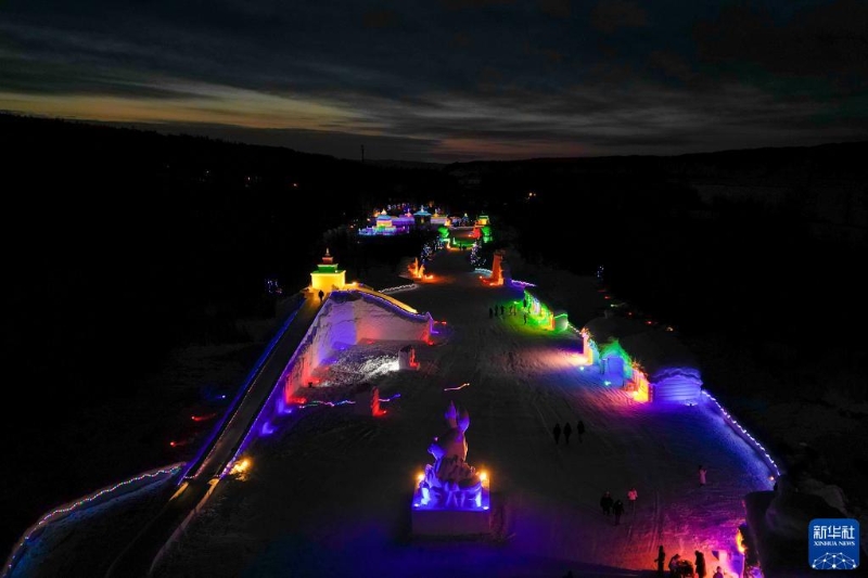 這是1月7日拍攝的漠河市北極村冰雪童話世界夜景(無人機(jī)照片)。