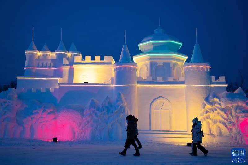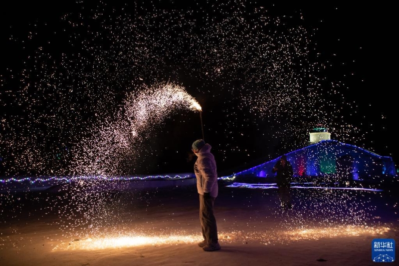1月7日,游客在漠河市北極村冰雪童話世界內(nèi)游玩。
