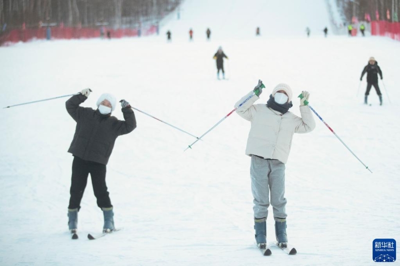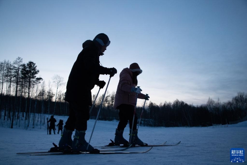 1月7日,游客在漠河市北極村滑雪場內(nèi)體驗(yàn)滑雪。