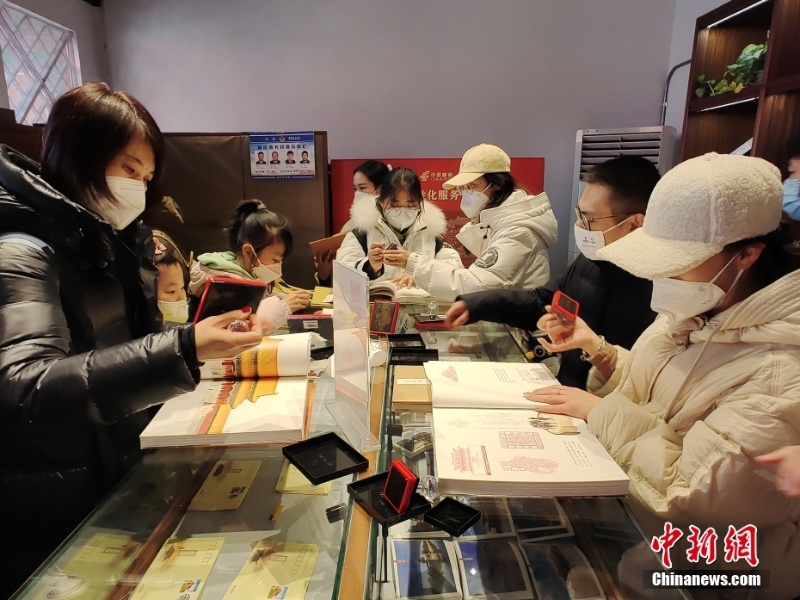 1月10日,北京,故宮郵局開業(yè)首日現(xiàn)場火爆,吸引大量游客打卡。故宮郵局位于故宮神武門內(nèi),在郵政服務(wù)基礎(chǔ)上,還提供包括郵票、郵折、紀(jì)念封、系列明信片等體現(xiàn)故宮文化的主題文創(chuàng)產(chǎn)品。圖片來源:視覺中國