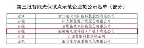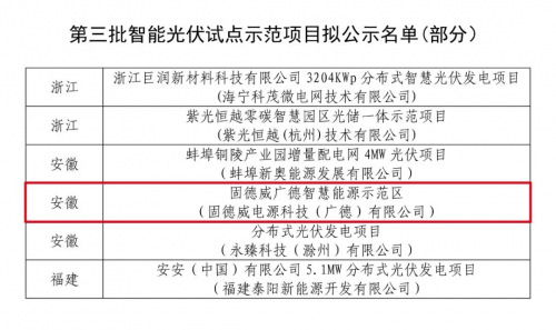 近日,國家工信部公布了《第三批智能光伏試點(diǎn)示范名單》,固德威電源科技(廣德)有限公司和固德威廣德智慧能源示范區(qū)入選“第三批智能光伏試點(diǎn)示范企業(yè)”和“第三批智能光伏試點(diǎn)示范項(xiàng)目”,固德威同時(shí)入選兩項(xiàng)示范名單,占領(lǐng)行業(yè)“智”高點(diǎn)!