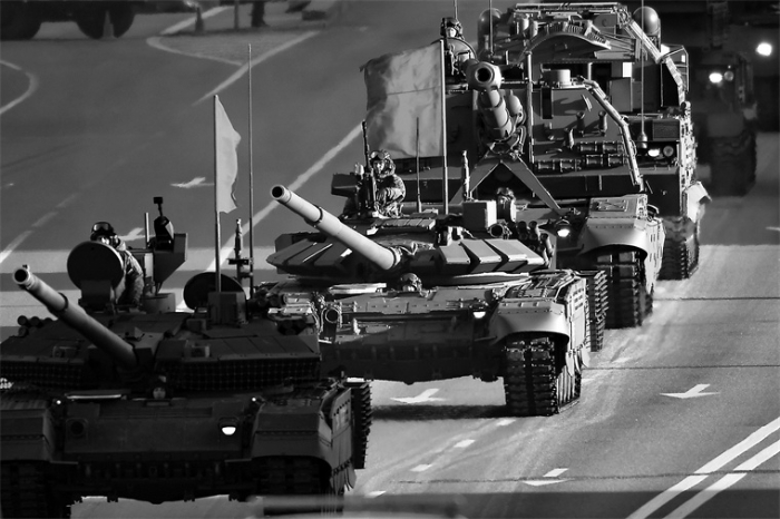 紀(jì)念衛(wèi)國戰(zhàn)爭(zhēng)勝利77周年閱兵活動(dòng)中,俄軍裝甲部隊(duì)從莫斯科市區(qū)駛過。資料圖片