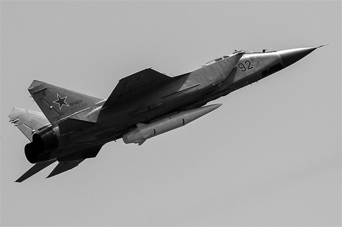 掛載“匕首”高超聲速導(dǎo)彈的俄米格-31K戰(zhàn)機(jī)。 資料圖片
