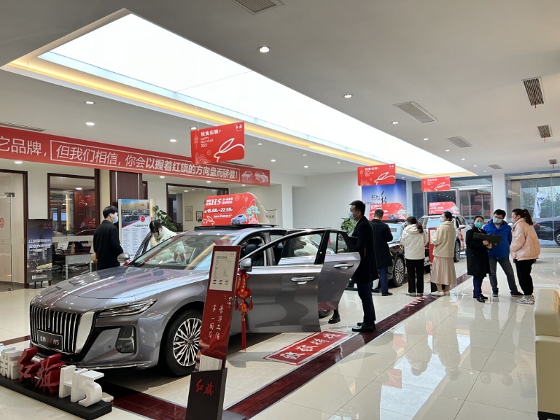 元旦期間,顧客在馬鞍山金福聯(lián)紅旗汽車體驗中心選購汽車。(受訪者供圖)