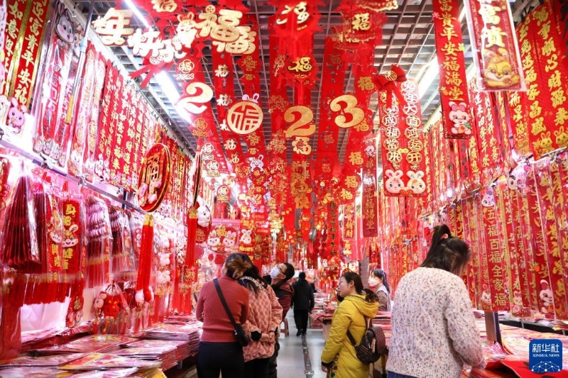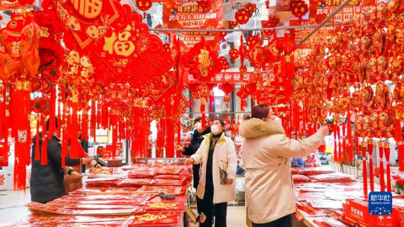 春節(jié)臨近,各地年貨市場紅紅火火,人們忙著選購年貨,喜迎新春佳節(jié)。