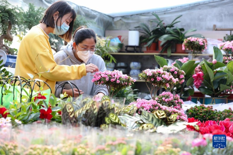 1月10日,人們在河北省石家莊市趙縣韓村鎮(zhèn)小呂村花卉基地選購鮮花。