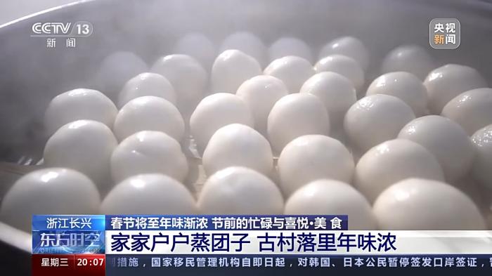 在浙江湖州長興縣周吳岕村,制作團(tuán)子是當(dāng)?shù)丶壹覒魬舻膫鹘y(tǒng)習(xí)俗,寓意新的一年合家團(tuán)圓、幸福美滿。團(tuán)子蒸熟后,滿滿的糯米香撲鼻而來。冬日暖陽下,白團(tuán)子晶瑩剔透,綠團(tuán)子綠意盈盈。