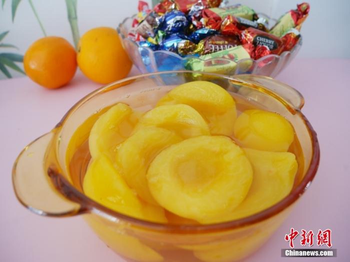 圖為擺上吉林市民餐桌的黃桃罐頭。 中新社記者 石洪宇 攝