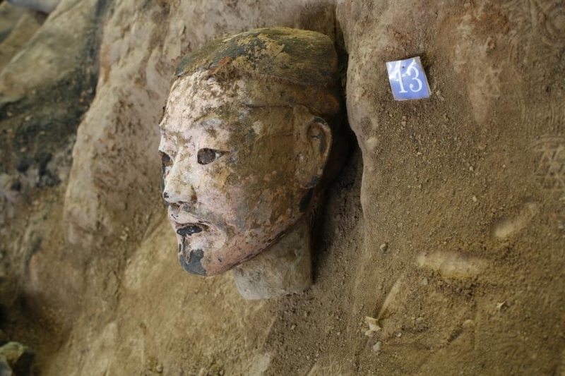 這是一號(hào)坑第三次考古發(fā)掘發(fā)現(xiàn)的彩繪俑頭。