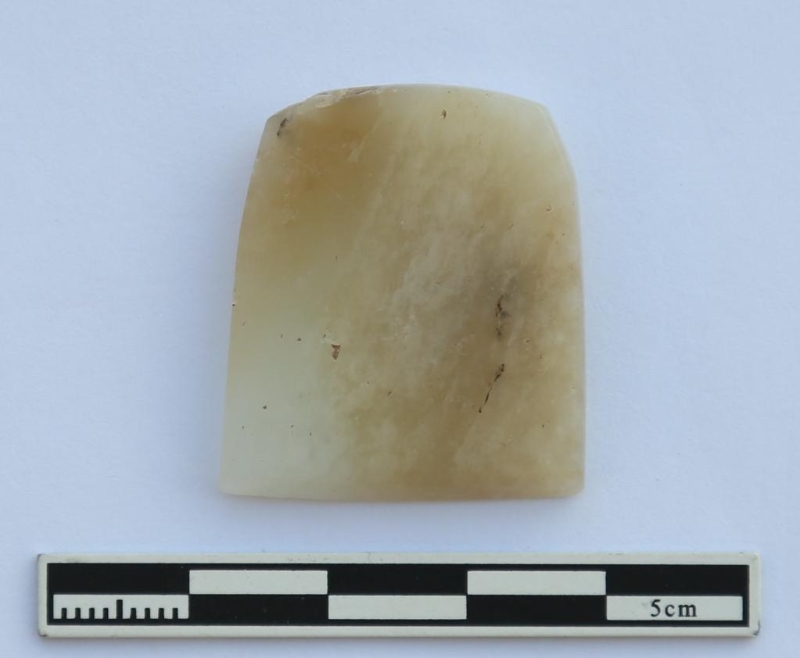 這是石峁遺址皇城臺高等級墓地中出土的玉錛?! ?/p>